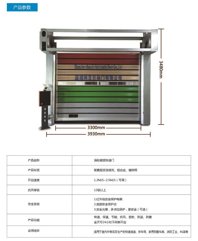 鴻發(fā)自動門的硬質(zhì)快速門,門體的螺旋軌道,采用的事故雙螺旋渦輪鋁型材導(dǎo)軌,特制滑輪,經(jīng)過不斷計算和試驗,使門體在運行的過程中更加安靜和平穩(wěn),承載的壓力也大大提高,讓門的運行速度更快的同時也提高了門體的使用壽命。同時配備了手動釋放剎車裝置,方便在停電等特殊情況下,可以人工打開門簾。所以,鑒于硬質(zhì)快速門對于物流通道的這么多優(yōu)勢,在此強烈推薦各大企業(yè)優(yōu)先選擇硬質(zhì)快速門作為物流通道的車庫門。